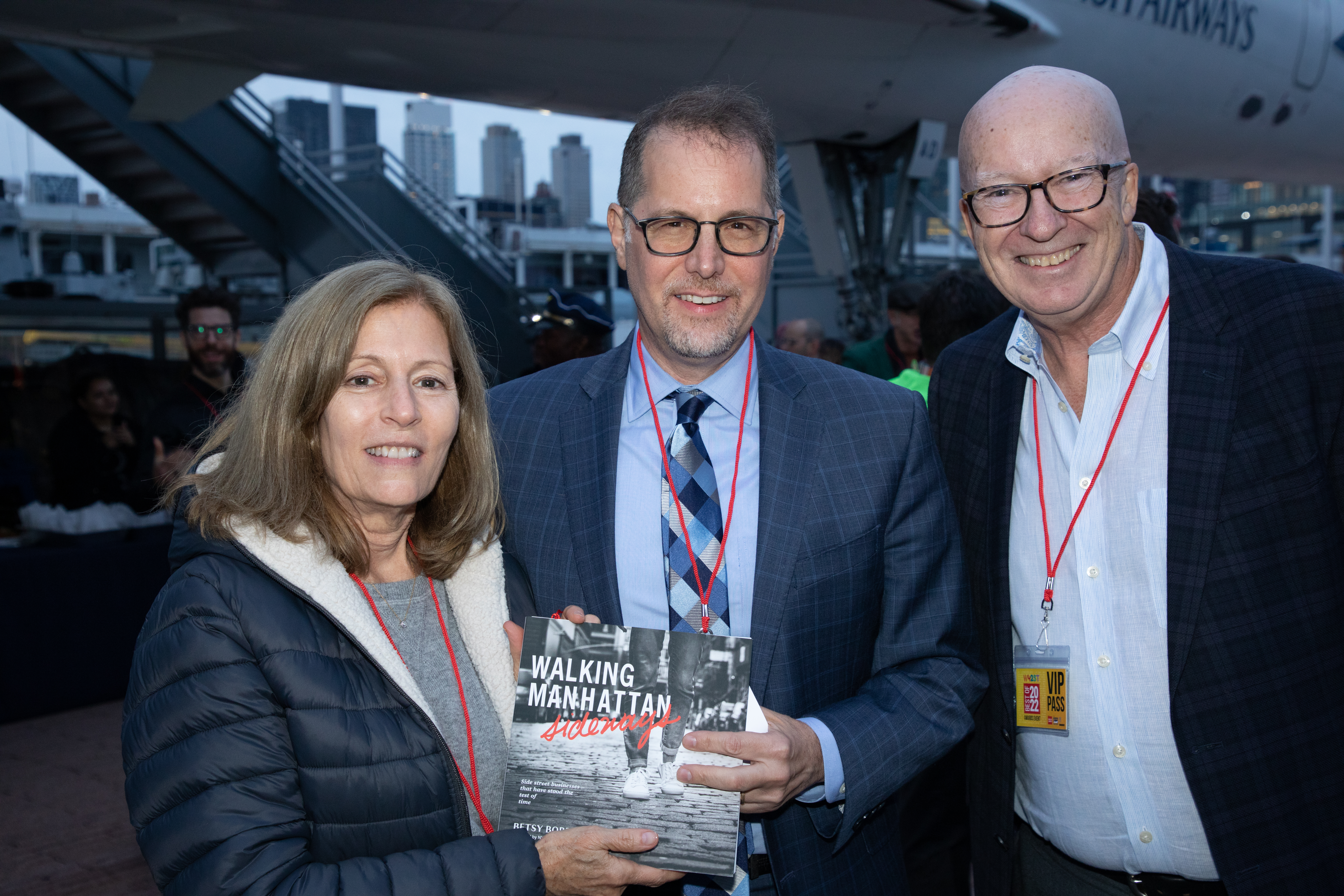 Manhattan Borough President Mark Levlne (center) with Betsy Bober Polivy and Phil O’Brien at the W42ST Best of Awards 2022 at Intrepid Museum. Photo: Max Guliani